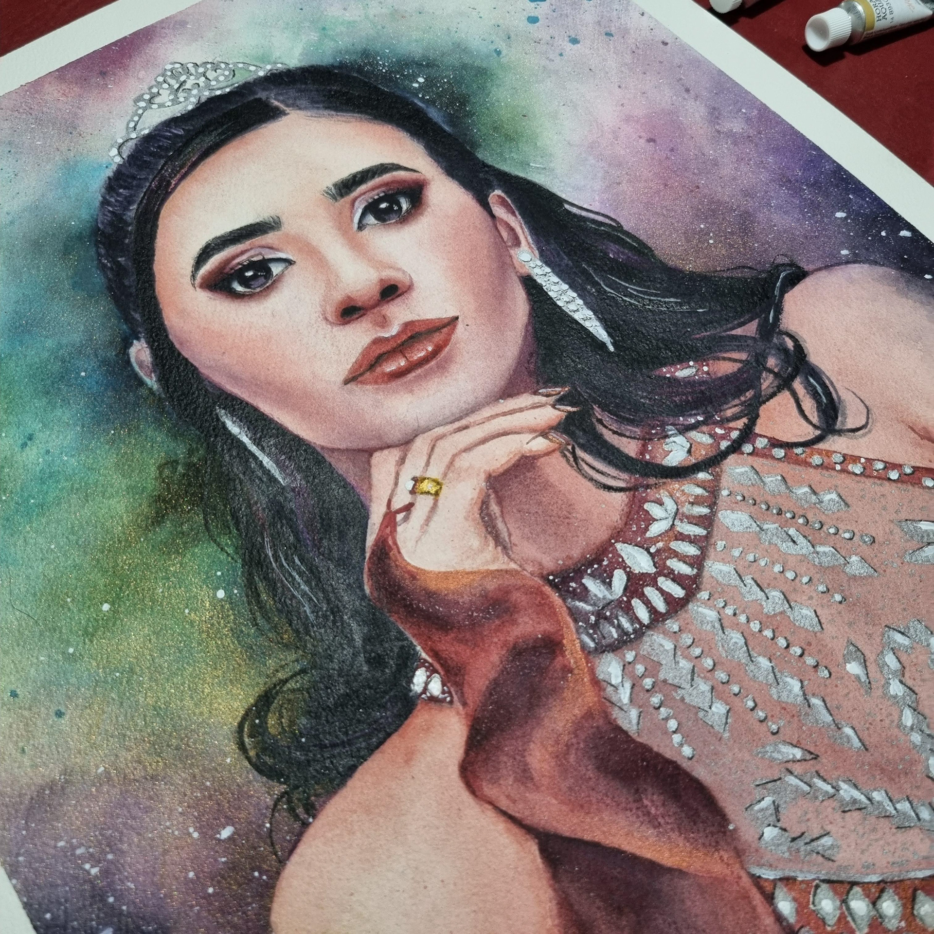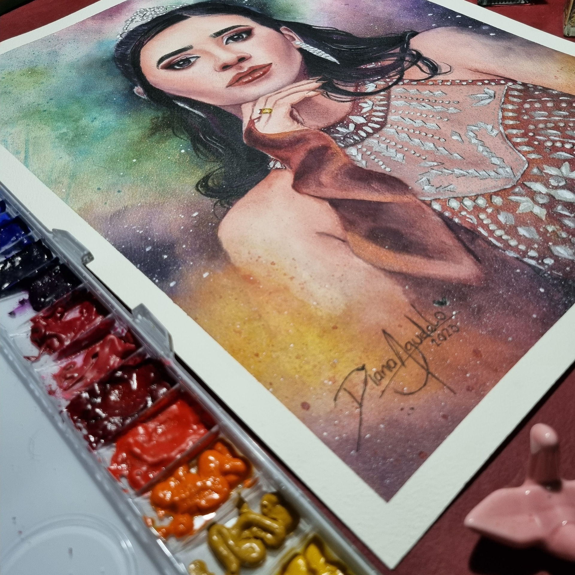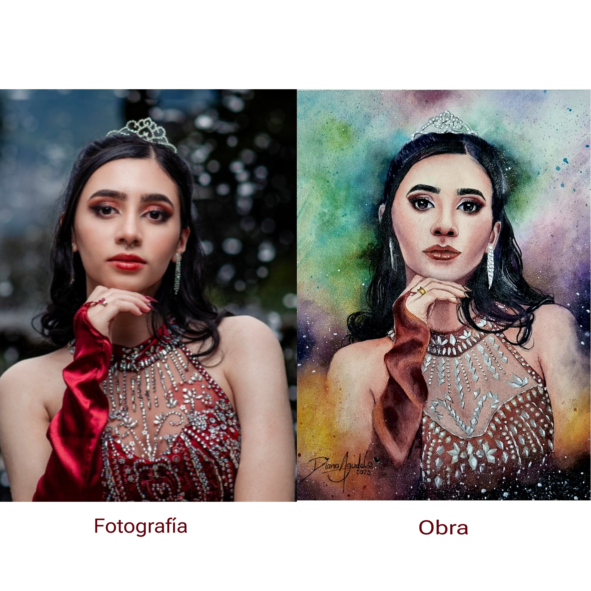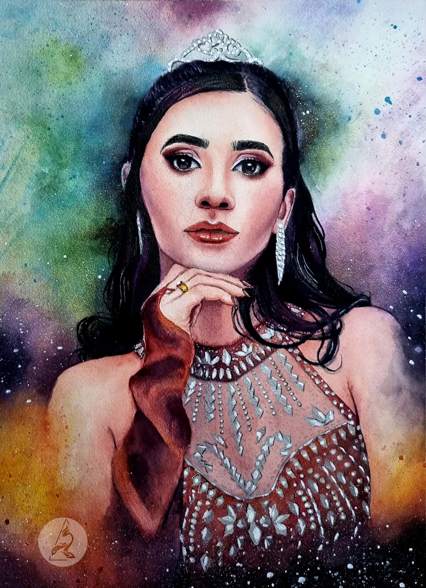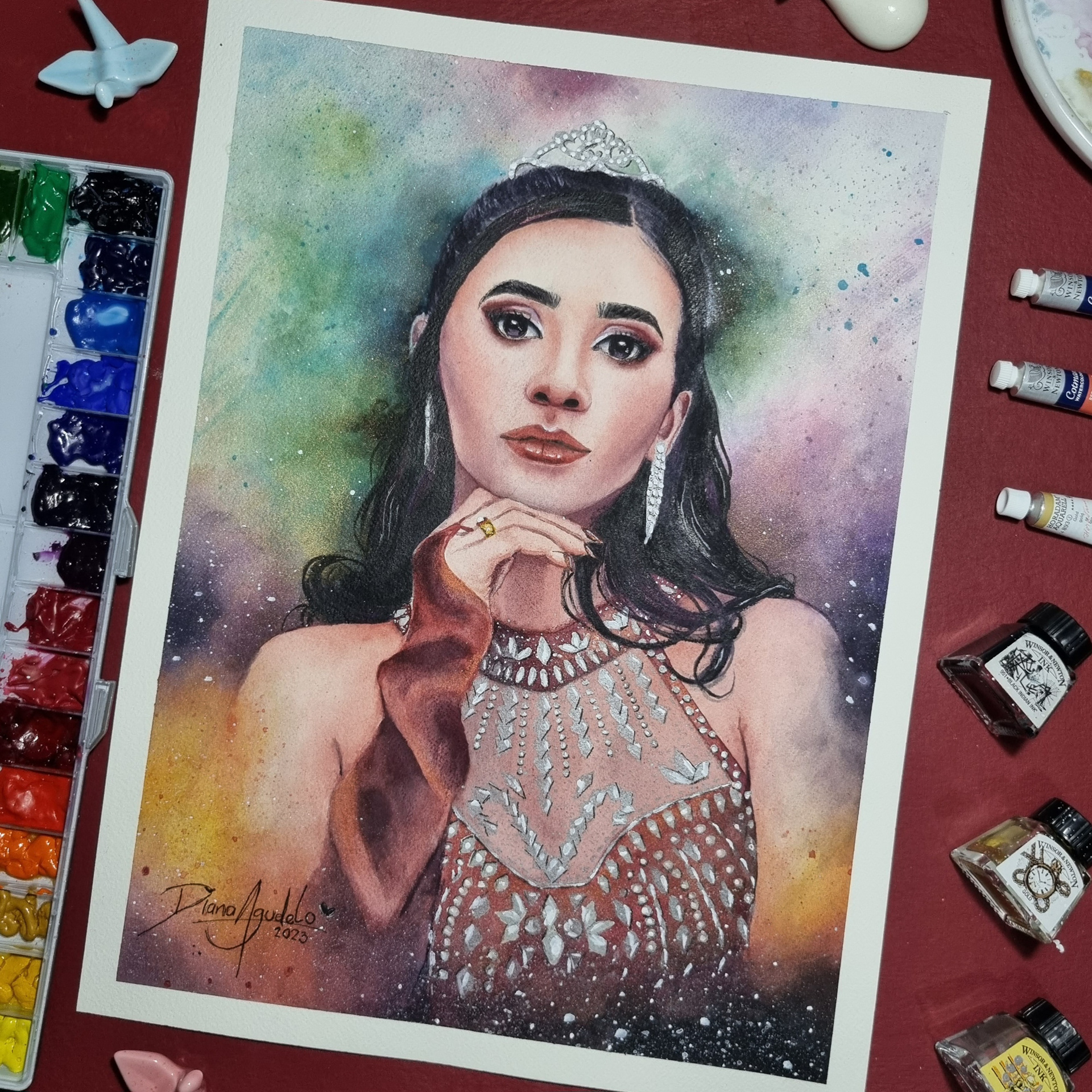 Retrato ilustrado en acuarela por motivo de sus 15 años