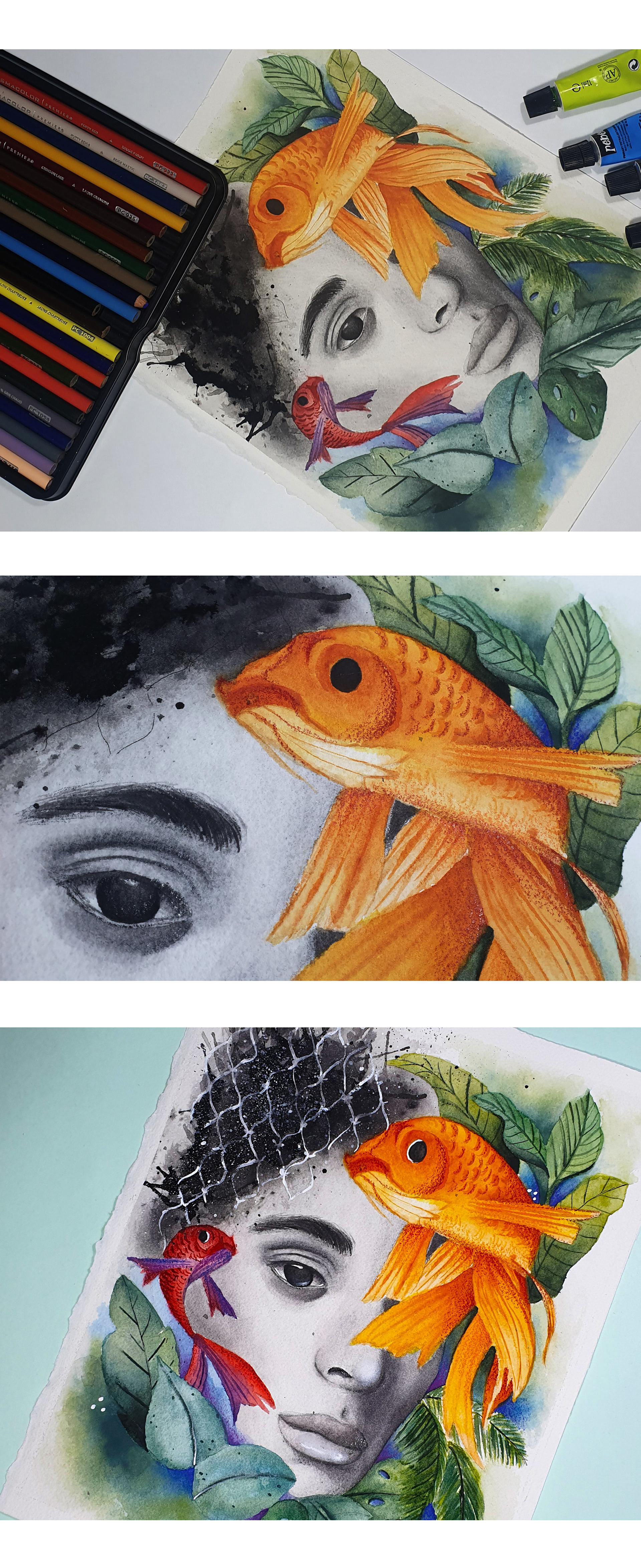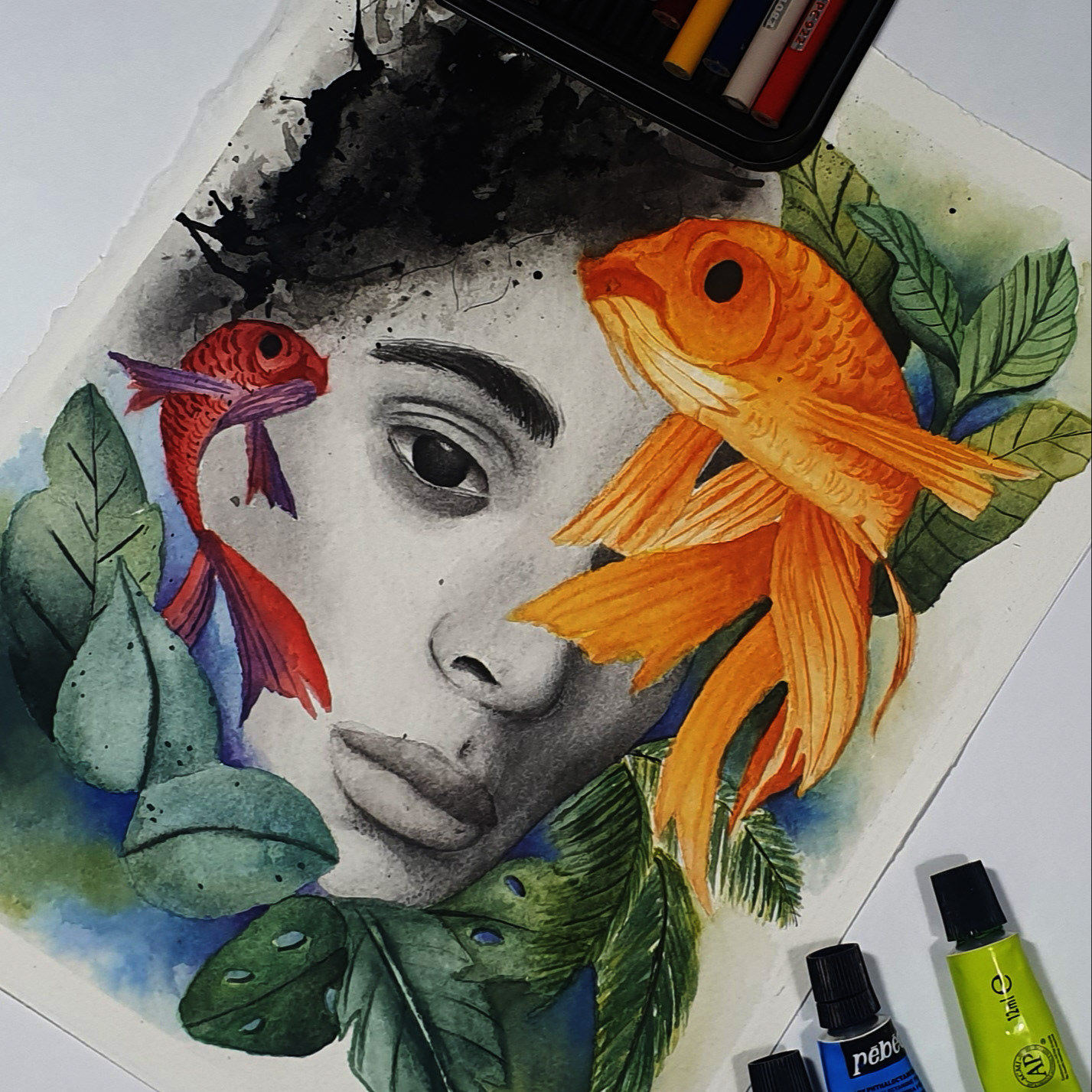 Técnica en Acuarela, grafito acuarelable y lápiz color